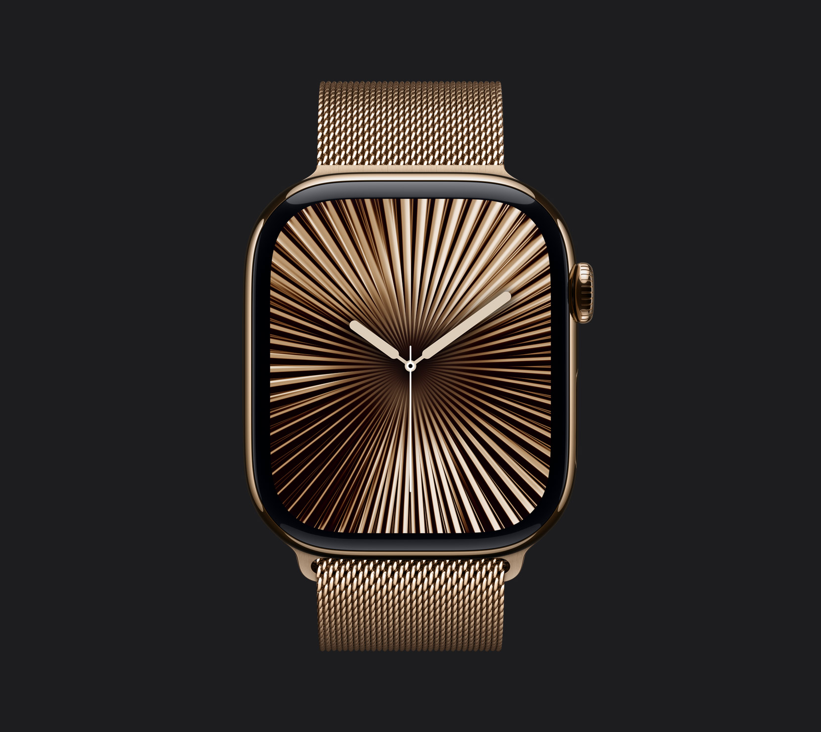 Ahora, por primera vez, puedes elegir entre tres acabados de titanio pulido tan deslumbrantes como resistentes. Para su fabricación se usa titanio de calidad aeroespacial que se pule hasta alcanzar un brillo elegante y espejado. La impresionante relación entre resistencia y peso del titanio permite que el Series 10 sea casi un 20% más liviano que el Series 9 en su versión de acero inoxidable, sin comprometer la solidez.
